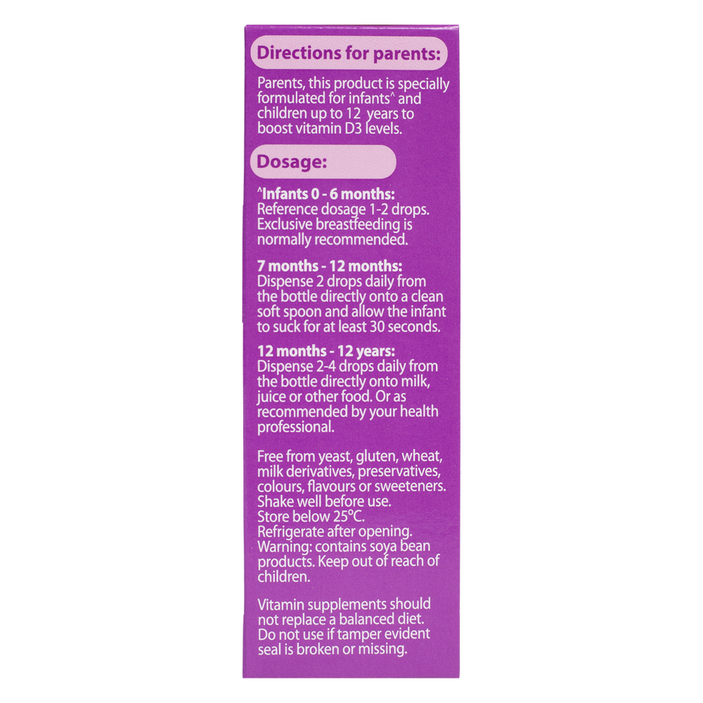 | Độ tuổi phù hợp | Trẻ dưới 12 tuổi có nhu cầu bổ sung vitamin D3 do chế độ dinh dưỡng bị thiếu hụt. |