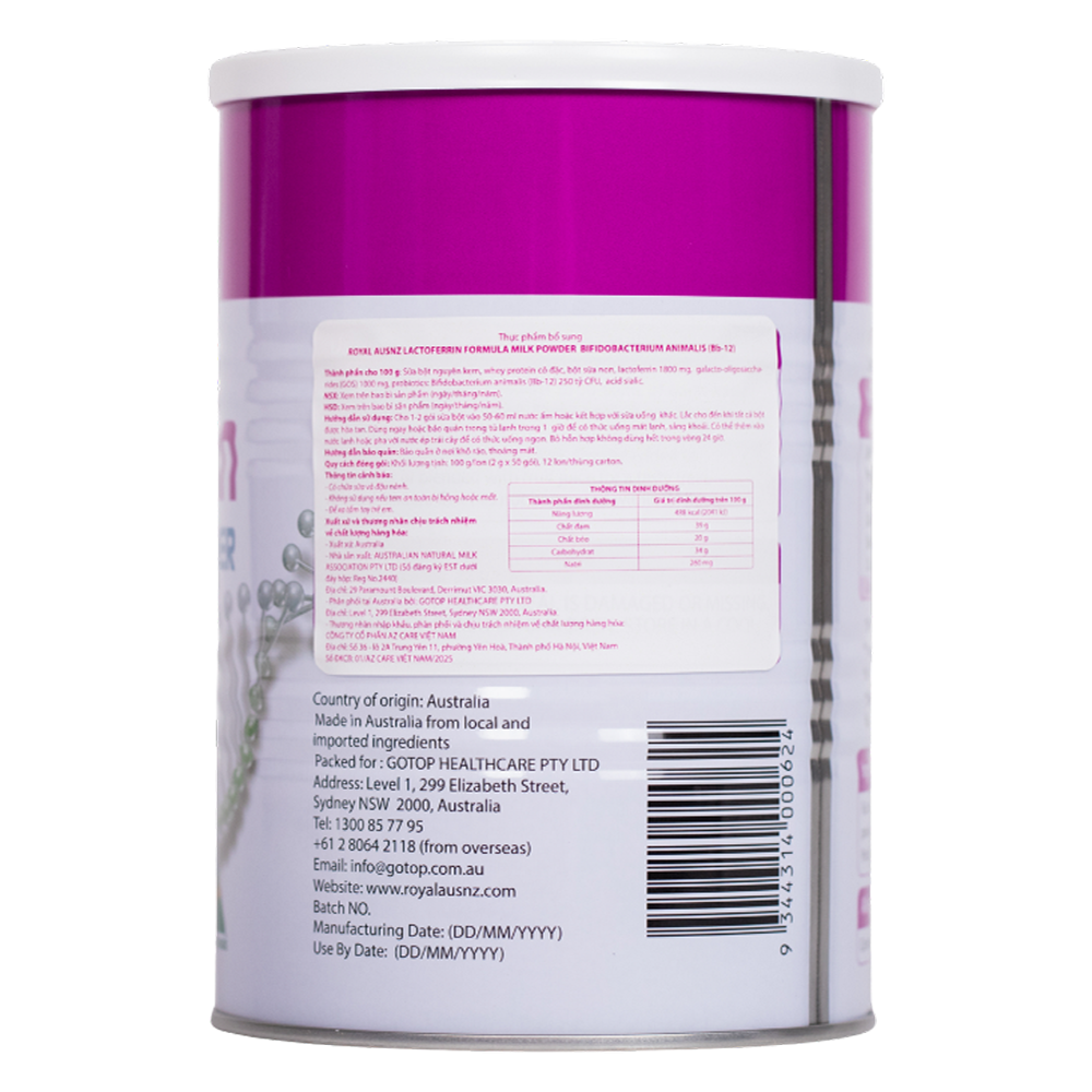 Tên sản phẩm | TPBS Royal Ausnz Lactoferrin Formula Milk Powder Bifidobacteriumanimalis (BB-12) |
