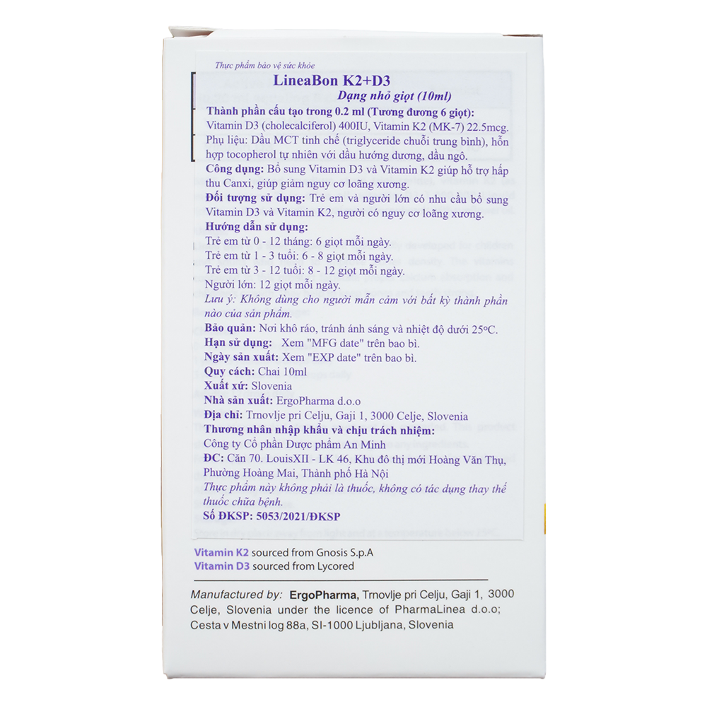 | Tên sản phẩm | Thực phẩm bảo vệ sức khỏe LineaBon K2 + D3 |